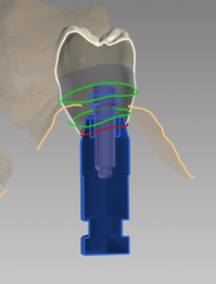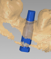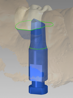 Prama Designer includes the libraries of Prama Regular Neck. After the import of a scan and the matching of the scanbody, the real position of the implant will be visible, even with the post on top, if necessary.